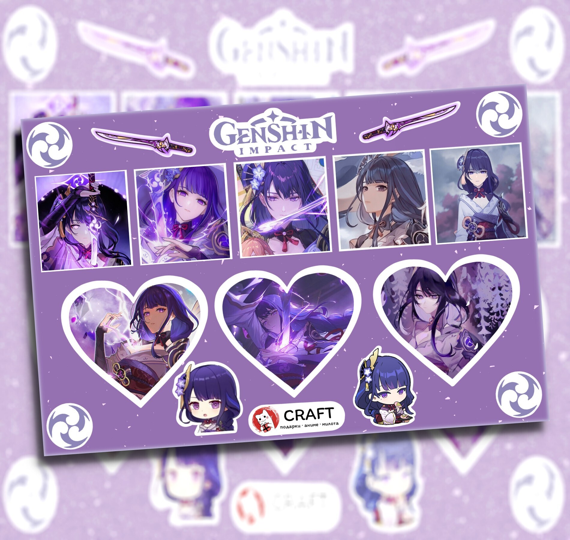 Стикерлист "Геншин Импакт - Сердечки" - Баал (Сёгун Райден)